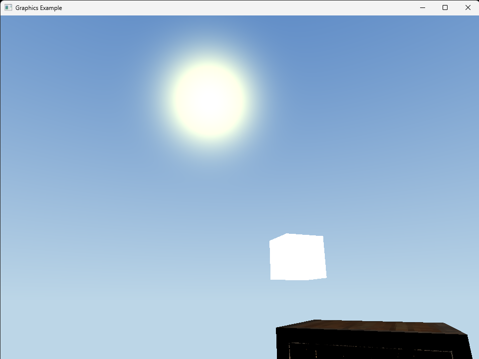 Next up is lighting. For this project we had to create a skybox with a sun and a directional light. Not having done this previously, I followed the videos of my teacher that explained the math behind all of it and showed me how to implement it. I now had a skybox with a sun!